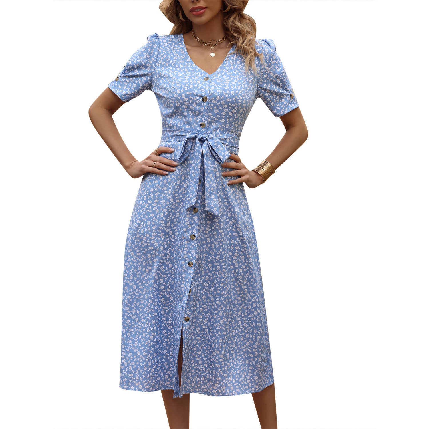 Women's Temperament Commute Casual Vacation Style Printed Knotted Dress